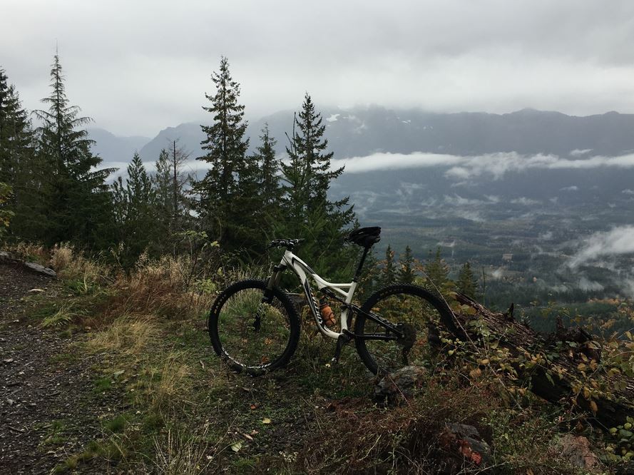Plenty of wet leaves, wet rocks, wet roots and hero dirt if your tires can get through the leaves. I caught a break in the rains this morning and went up the lower shuttle road to go down Lower Showcase. Showcase is hard enough as it is, but add wet leaves over all the terrain challenges and it is a little tougher. This weekend's wind storm will complicate things even further. I bit it on one of the steeps after slipping on two roots but the trail is still fun. Be careful for a while! I went back up to do Lower Skyline and that trail always delivers a happy time for me. There are a lot of braking bump puddles now but the trail is still tracking well. Had a great pizza and drink at the Rivertime Brewery afterwards for lunch! It was a great morning. GPS track is here.