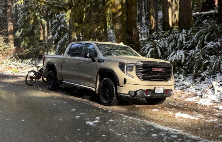 Today, before the next big dump of snow up high or heavy rain down low, I went back to Darrington to try an upper trail or just do a couple skills park trails. I drove the truck to the lower shuttle lot where 12” of snow still existed. So the upper trails are not available. I drove back down to the Skills Park and took the bike on the Logger and High Grade trails with only up to 1” of dusty snow. The couple inches of snow the night before was sluffing off the trees under the canopy so the ride was a wet, drippy, hassle with snow clumps landing all around me and into my helmet’s vents occasionally. The lower trails were in good shape and just a little frost on the roots. The Trailforks ride log is here.